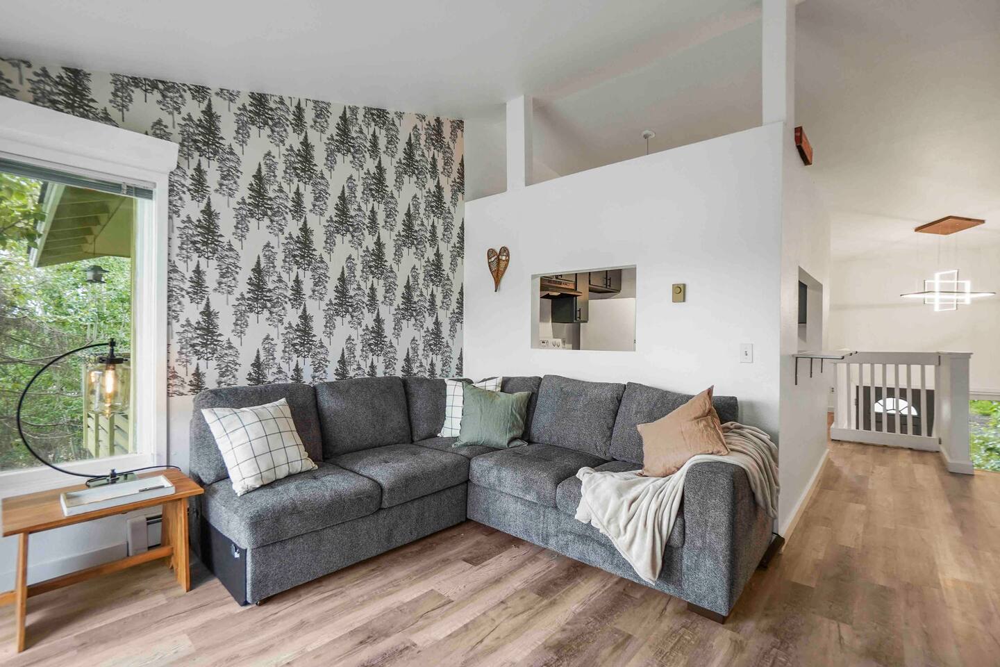 UPSTAIRS Cozy living room with sectional sleeper, electric fireplace & patio Fully equipped kitchen with fridge/freezer, dishwasher, electric stove & coffee station Spacious dining area with table for 4 DOWNSTAIRS Room 1: queen bed, nightstand, large closet Room 2: queen bed, nightstands, large closet Bathroom: full bath with bathtub, shower, toilet Laundry closet with full size washer & dryer PARKING Uncovered parking area in front of unit’s walkway with 2 tandem spaces